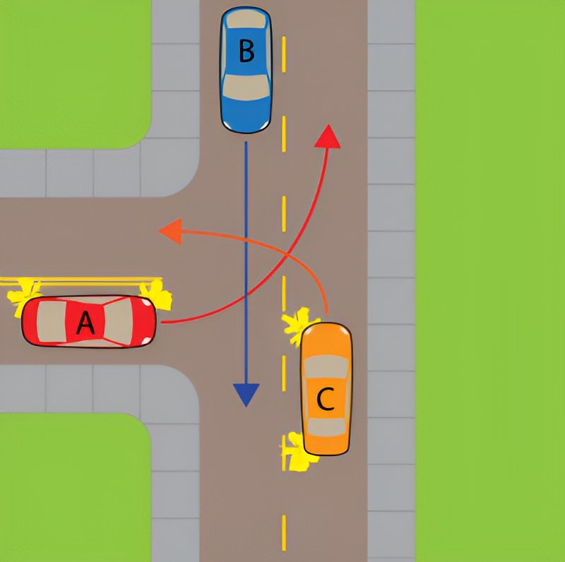 In what order can the 3 cars in the uncontrolled intersection proceed?